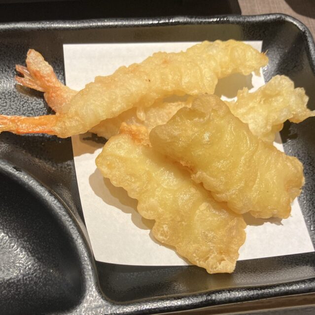 その分、エビとイカの天ぷらは安定の美味しさ!プリプリのエビと柔らかなイカが、揚げたてサクサクの衣をまとって登場。こちらは文句なしの合格点でした。