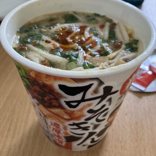 熱湯を注ぎ、待つこと5分。フタを開けると、食欲をそそる味噌の芳醇な香りが一気に広がります。期待が高まる瞬間ですね。