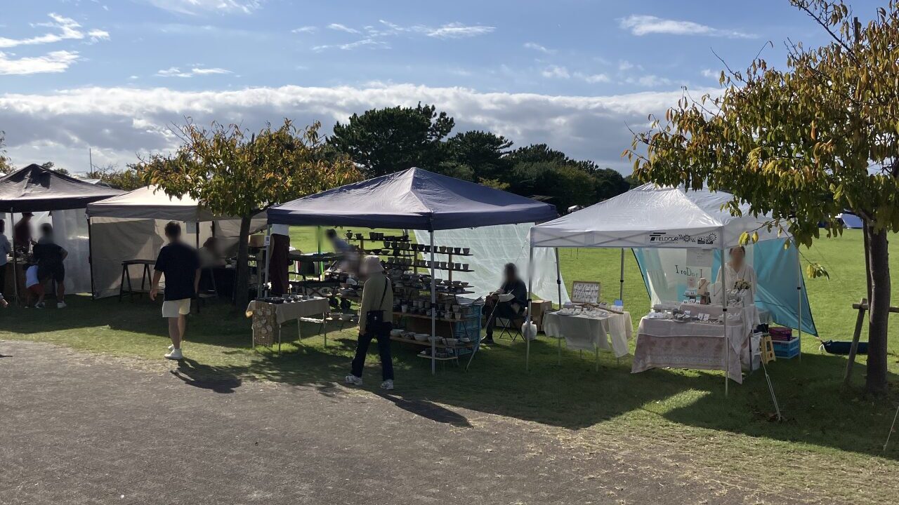 今回の吉田公園でのイベントは、地元でも有名なクラフトフェアでした!100件程度の出店があって、公園一周がまるでアートの回廊のようになっていました。