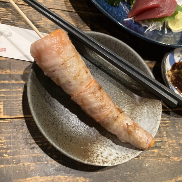 迷わず注文した人気ランキングナンバーワンが、「とろける人参の朝霧高原豚巻き串焼き」です。