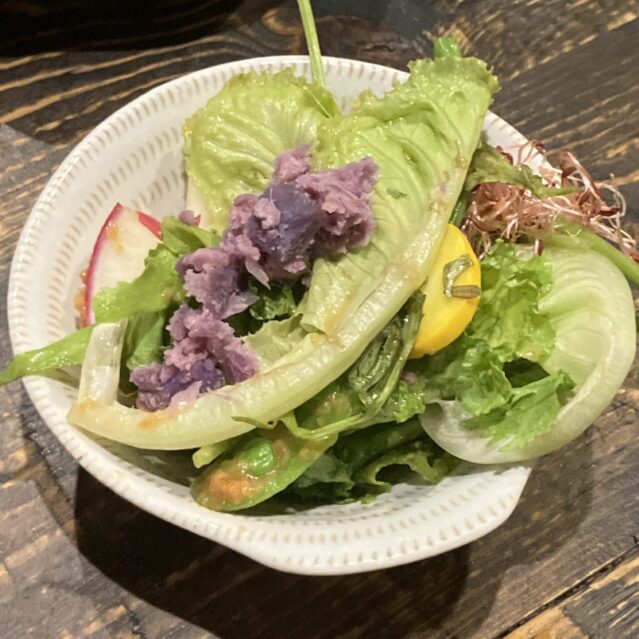 - きれいになるサラダ:女性にも人気の高い、地元農家さんの珍しい有機野菜がたっぷりで、自家製ドレッシングが野菜の味を存分に引き立てます。