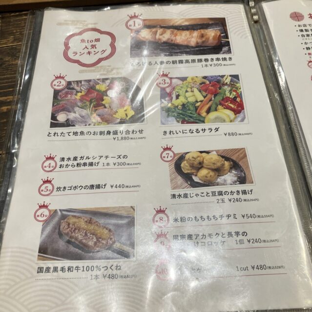 さらにメニューには「魚to畑 人気ランキング」が載っていて、これはもう期待するなという方が無理でしょう。
