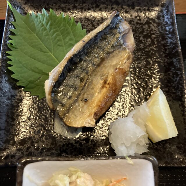 メインの焼き鯖は、想像していたジューシーなタイプではなく、どちらかというとパサパサ系でした。少し小骨が多く、皮の黒い部分は苦味が強めです。正直に言うと、俺の好みではありませんでしたが、昔ながらの港町の定食屋さんの味を再現しているのかもしれないと感じました。