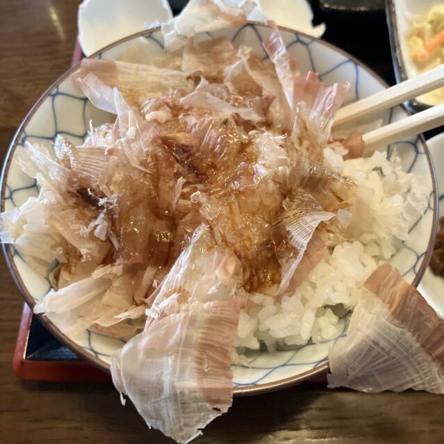 まず、ご飯は猫まんまで食べれます。この鰹節の猫まんまご飯がめちゃくちゃ美味い!あっという間に鰹節部分を完食してしまいました。追加で温玉も上からかけて温玉ご飯にもしてしまいましたが、これも間違いない美味しさでした。