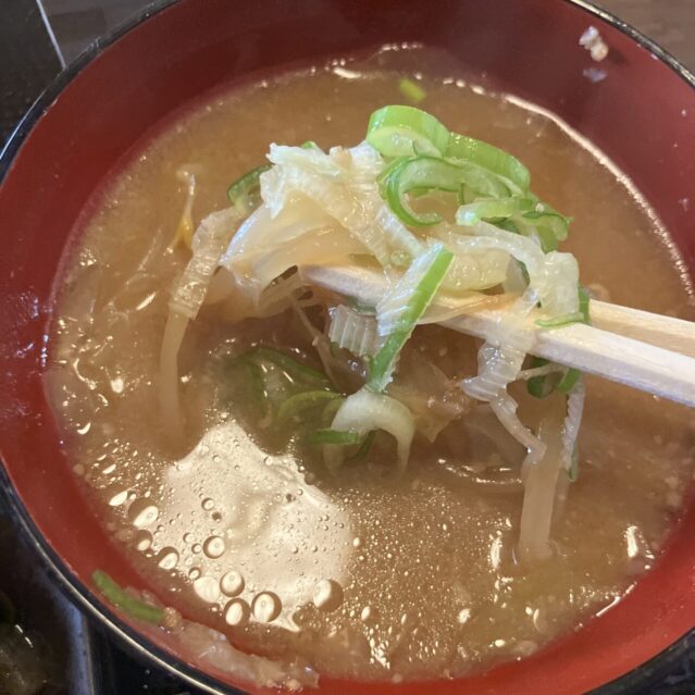そして、味噌汁!これがまた具沢山でボリューム満点なんです。味噌汁というより、まるで野菜のスープのよう。出汁がしっかり効いていて、存在感が強く満足でした。