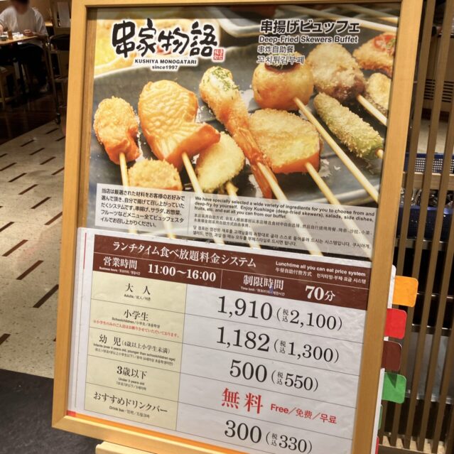 「串家物語」は、基本的に70分の時間制限付き食べ放題です。
