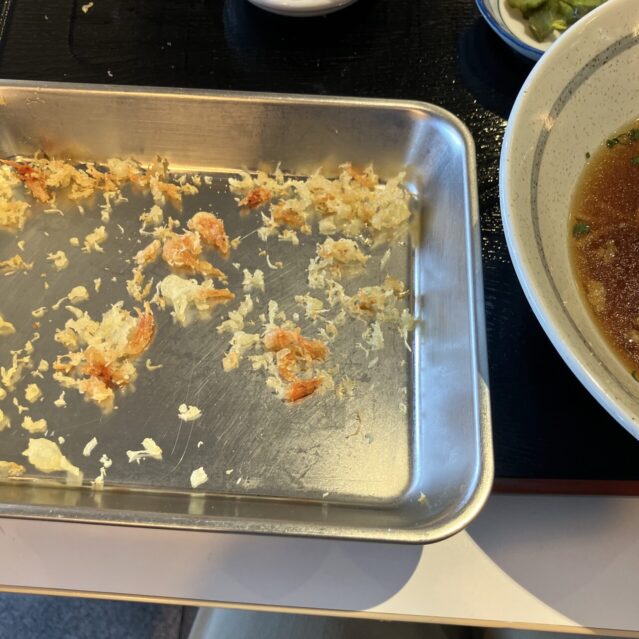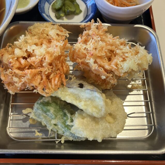ちなみに、桜エビかき揚げの単品価格は600円(×2枚)、蕎麦も単品だと700円かな、と考えると、それに他の天ぷらや小鉢まで付いて2,000円の定食は、お得なセットだと感じました。(昔に比べると桜エビのかき揚げ自体が高い印象もありますしね)