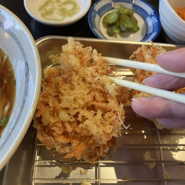 - 余ったかき揚げのサクサクを、蕎麦に「天かす」のように投入!