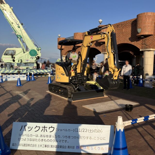 たまたま見かけたんですが、その名も「しずおか建設まつり」と「静岡はたらくクルマ展」の同時開催!清水港の近くにあるドリプラは、週末のお出かけスポットとして有名ですが、こんなに子供向けの良いイベントをやっていました。