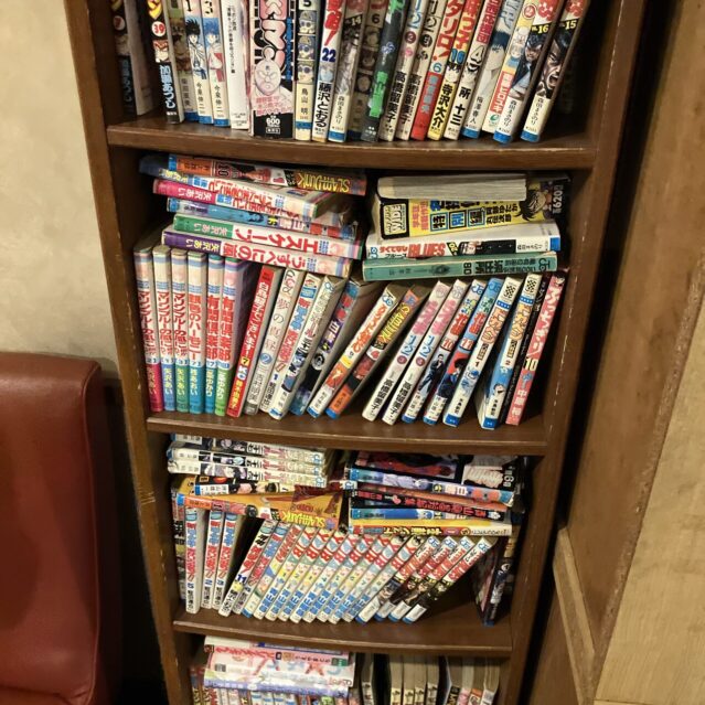 でも大丈夫!店内には懐かしの漫画がズラリと並んでいるんです!俺は、久しぶりにキン肉マンを読みながら待ちましたよ(笑)。お水はセルフサービスなので、漫画でも読みながらゆったり待つのもありですね。