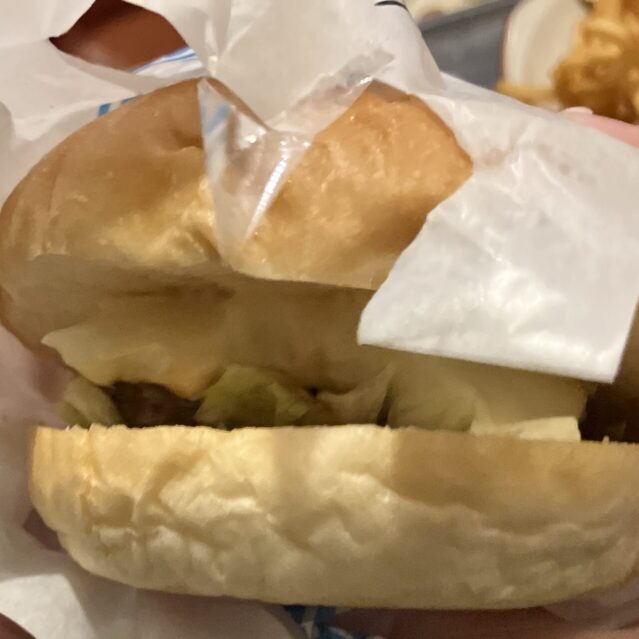 チーズバーガーも、もちろんボリューム満点!とろーり溶けたチーズと、肉厚なハンバーグの相性は言わずもがなですね。