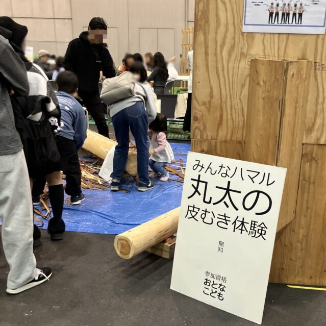 - 俺もハマった!「みんなハマル丸太の皮むき体験」 今年の俺のイチオシ体験はこれ!「みんなハマル丸太の皮むき体験」です。ノミやヘラを使って、丸太の皮を剥いていくんですが、これが本当に無心になれる(笑)!木材の香りに包まれながら、大物(大きな皮)が上手く取れると、本当にすっきりして気持ちが良いんですよ(笑)。大人も子供も夢中になってましたね。