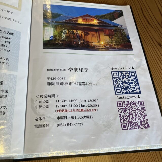 - やま和季は、藤枝市の谷稲葉IC近くにある人気の日本料理店です。