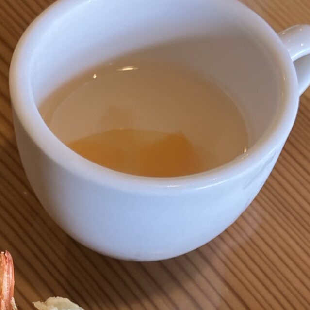 天ぷらにも海老が入っていましたが、同様に味わいが濃く絶品でした。天ぷらは、ゴマ油のような香りがほのかにして、揚げたてで熱々なのに、サクサクッというよりは、衣が軽くてふわっとした食感なんです。油っこくなくて、何個でも食べられそうでした。