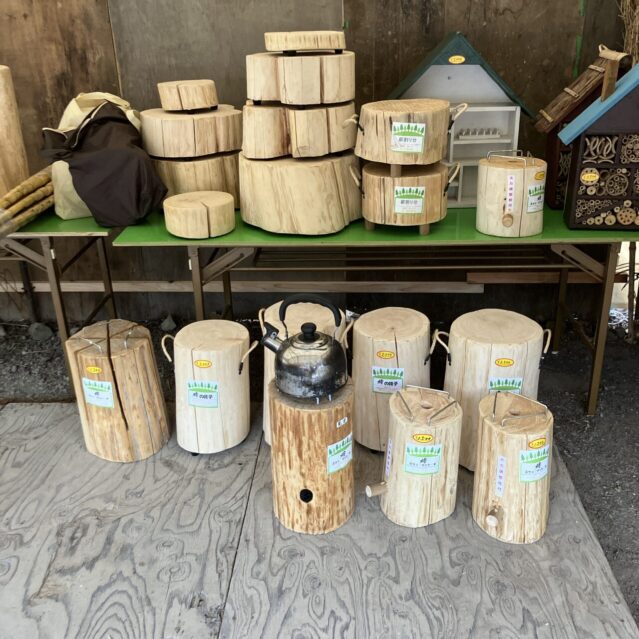 - 檜の椅子:特に気になったのが、檜(ひのき)の丸太椅子。キャンプやガーデニングにも使えそうで、しばらく買おうかどうか本気で悩んでいました…(今もまだ悩んでいます)。