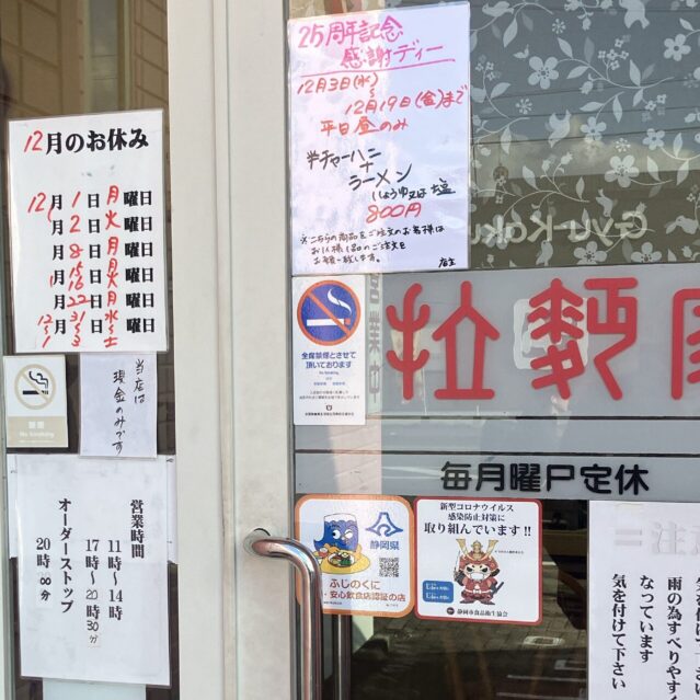 静岡市で美味しいラーメンや中華料理を探しているなら、ぜひ一度は足を運んでみてください。特に25周年感謝デーの期間中は、平日昼間限定で半チャーハン+ラーメンが800円だそうです、お得に楽しめるチャンスですね!