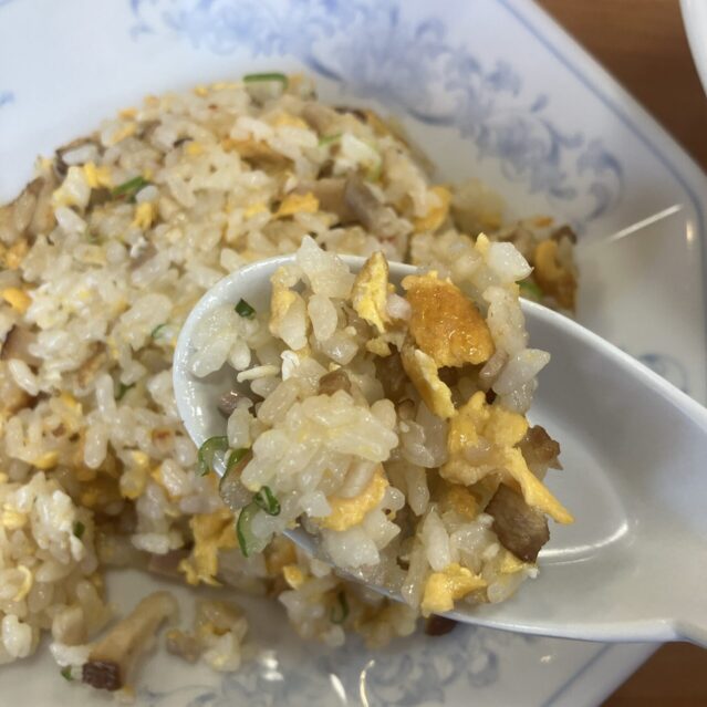 しかし、そのモチッとした食感の中に、散らばった硬めの小さいチャーシューが絶妙なアクセントになっていて、これがめちゃくちゃ美味いんです!噛むたびにジュワッとチャーシューの肉の味が口の中に広がり、レンゲが止まりません!ラーメンも美味しいですけど、このチャーハンも一度は試してほしいですねー。