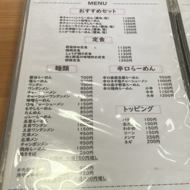 店内は、昔ながらの地元密着の町中華の雰囲気で、非常に落ち着きます。テレビもあります。メニューも豊富で迷いますが、今回はお店の定番を攻めます!
