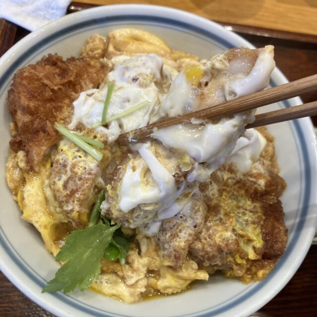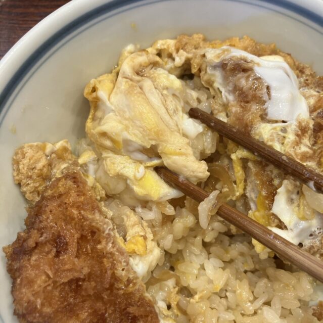 まず一口食べて、口の中に広がるのは、深みのある出汁の旨さ!これが、分厚いのに柔らかいとんかつを、ふわとろの卵と一緒に見事に包み込んでいます。