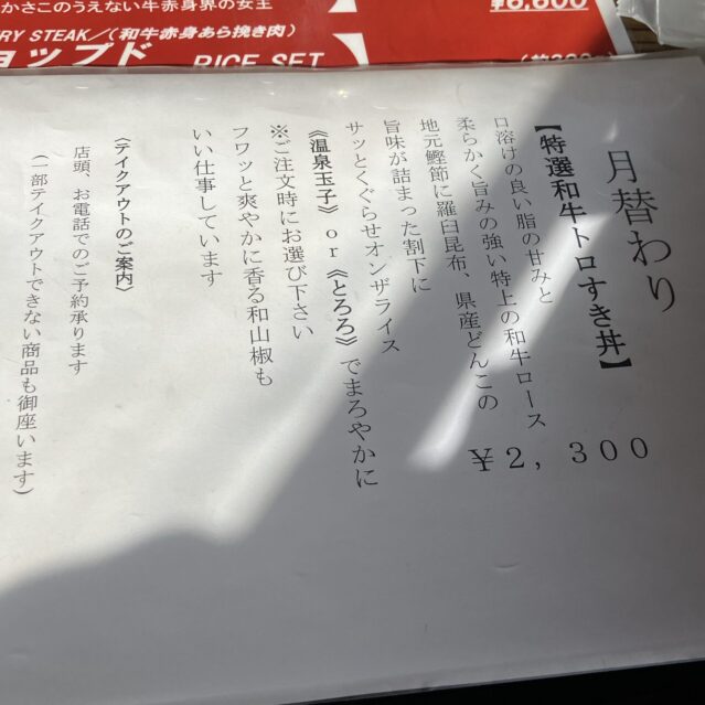 メニュー外で出ることがあるという、