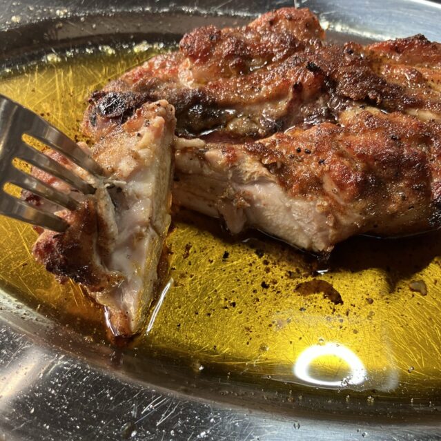 おしゃれカフェではありませんが、金色のチキンオイルに浸かった骨付鶏をナイフで切りながら食べる体験はなかなかありません。