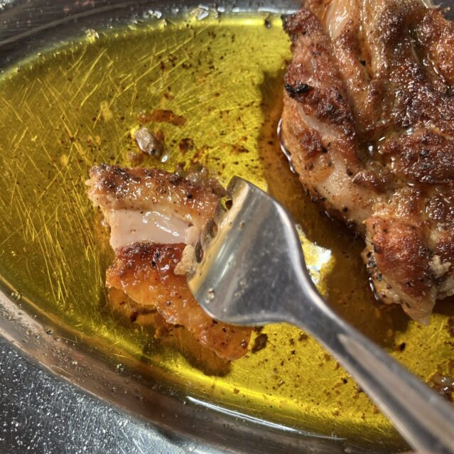 骨付鶏の味は?皮パリパリ、金色のチキンオイルが特徴