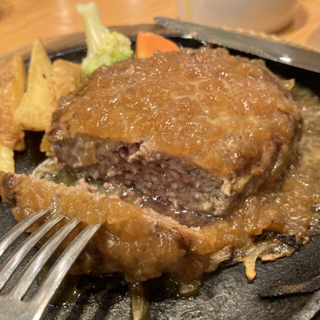 実際に食べてみても肉感がしっかりあり、満足度の高いハンバーグでした。