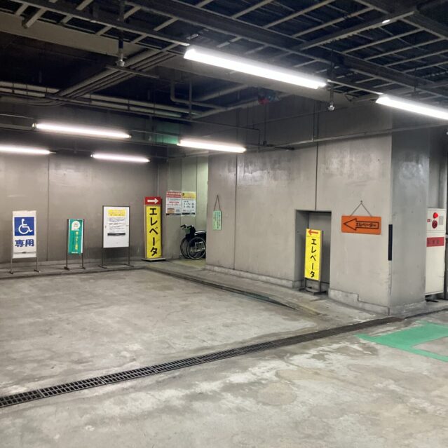 市役所地下の駐車場は立地のわりに使いやすく、
