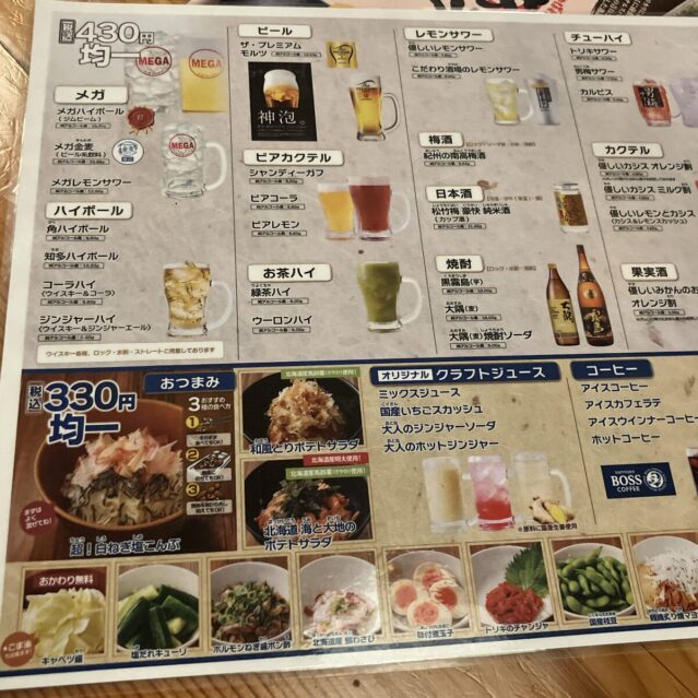 一方で、おつまみやソフトドリンクは330円という構成です。