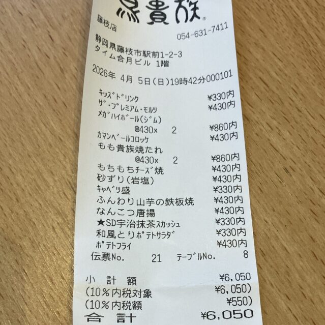 少し前に静岡市の鳥貴族で2人飲みしたときの金額レビューも参考にしてみてください。