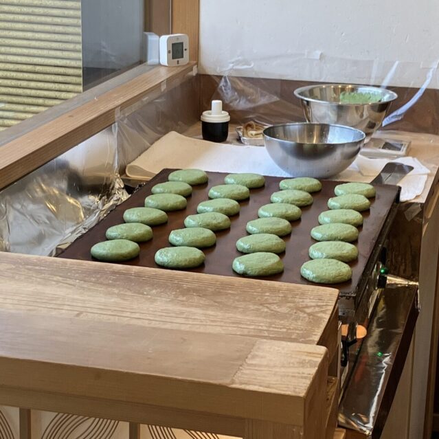 外側の生地にはよもぎが入っていて、ほんのり香りがあります。