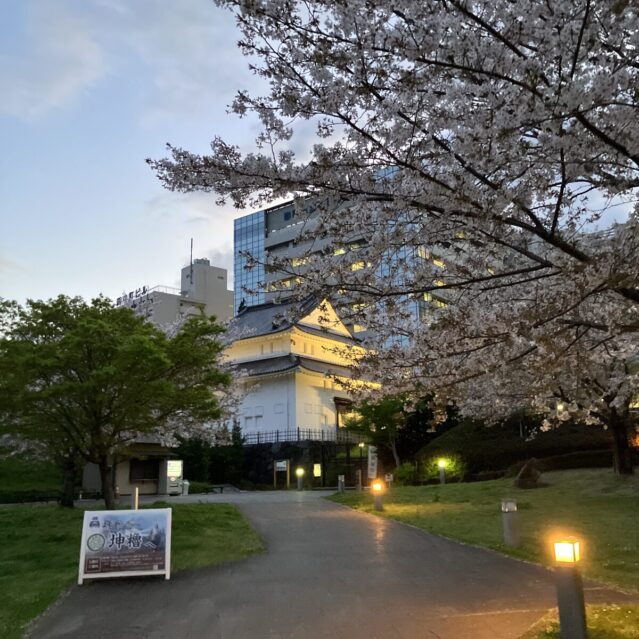 静岡市の駿府城公園で、平日4月8日18時30分ごろに夜桜を見に行ってきました。